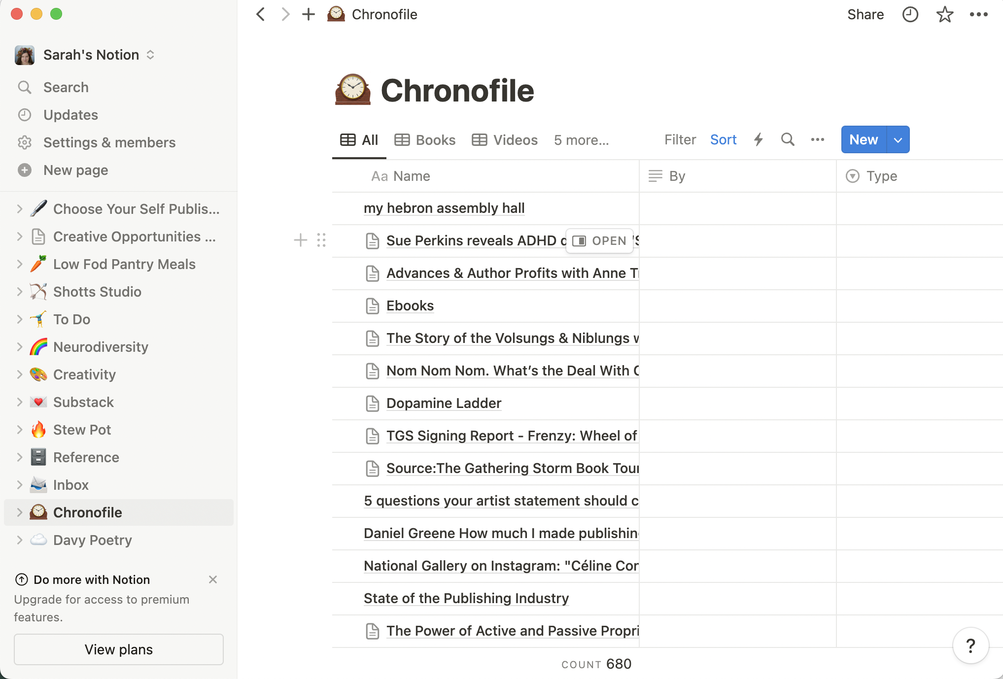 Part of the problem is I created this system when Davy was still napping in my lap a lot. So I had ages to poke around on my phone. Now I have other things to do and this type of cataloguing is not at my top of priorities. Here’s a screenshot where you can see I no longer take the time to fill out “by” and “type” which are kind of essential when it comes to finding what I’m looking for.)